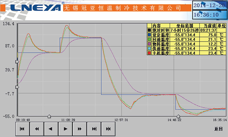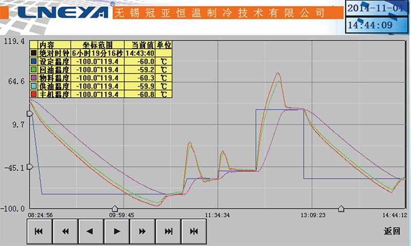 象。从-80℃加热到-60℃整个过程耗时15分钟,可以看出夹套温度达-12.2℃,导热介质最低降
