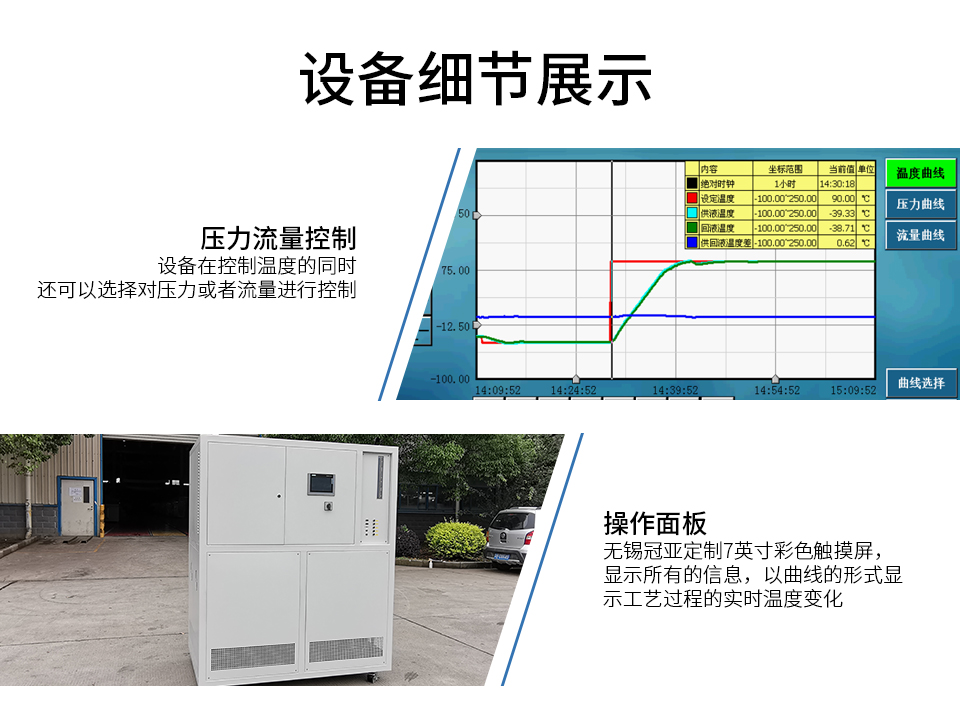 温度范围0℃~+100℃控温精度±0.5℃加热功率10KW~38KW电源 380V 50HZ17KW220V~65KW重量360kg~1700kg制冷剂R404A/R507C/R125/N140 四种制冷剂均可使用