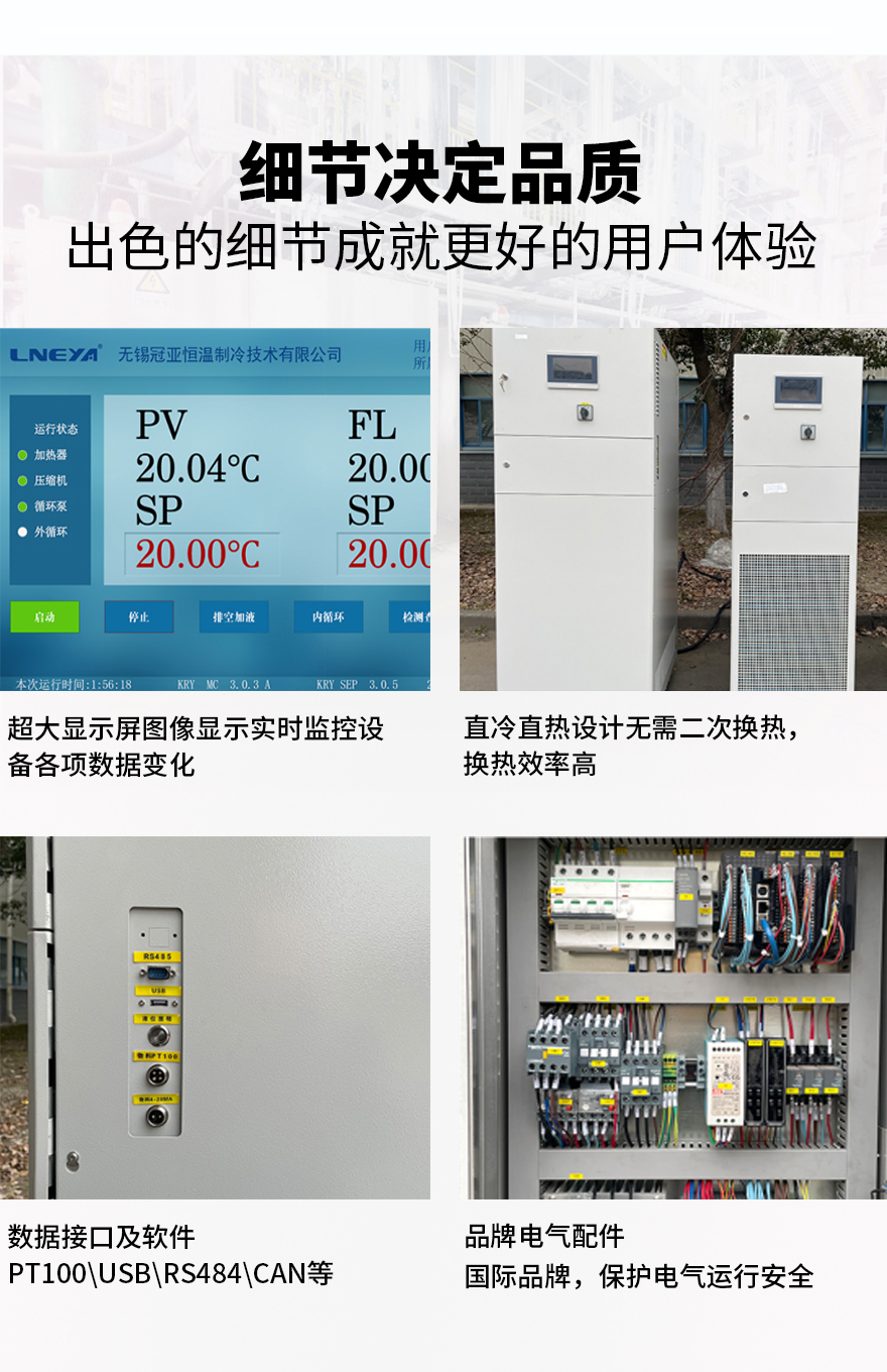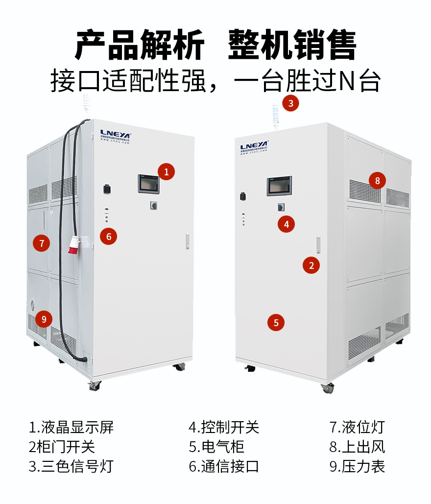 温度范围-20℃~+100℃制冷剂R404A/R507C/R125/N40 四种制冷剂均可使用控温精度±0.5℃加热功率15KW~38KW电源 380V 50HZ36KW~75KW重量900kg~1750kg