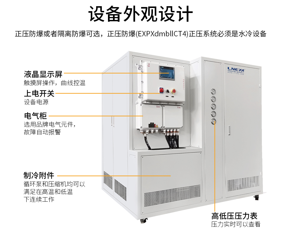 | 正压防爆 | 正压防爆(EXPXdmbIICT4) 正压系统必须是水冷设备 无锡冠亚防爆产品安装许可证号:PCEC-2017-B025 |